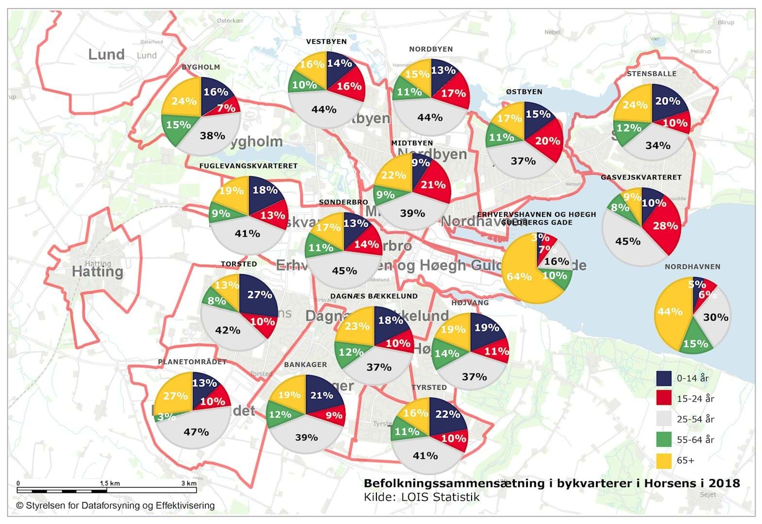 I Horsens Kommune ses det ved, at den største relative befolkningsudvikling forventes at ske i aldersgruppen 80 år og opefter. Det er en befolkningsgruppe, der skal tages højde for i planlægningen.