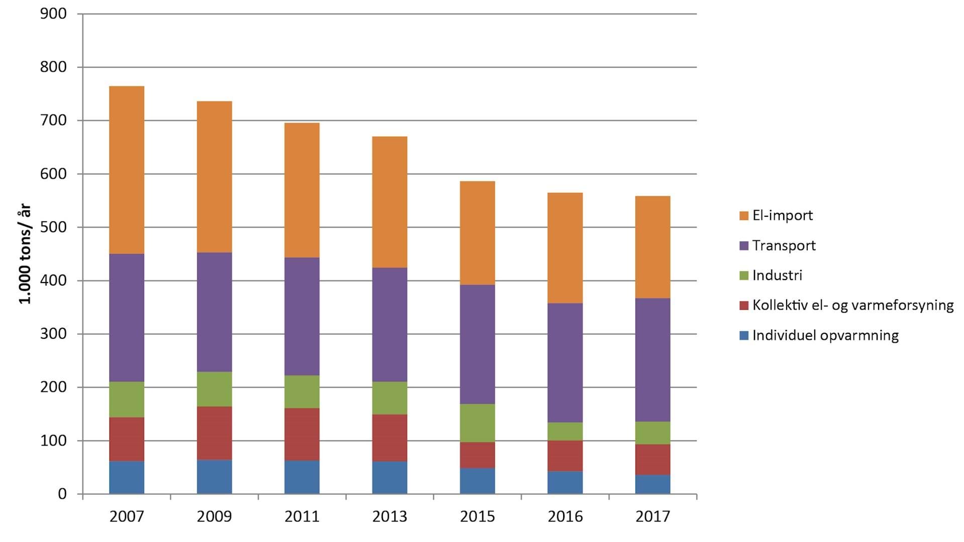Ser man på udviklingen i CO2-udledningen fra basisåret 2007 til 2017, er det mindste fald i udledningen sket på transportområdet. Samtidig er det også transportområdet, der står for den mindste udfasning af fossile brændstoffer fra basisåret 2007 til 2017.