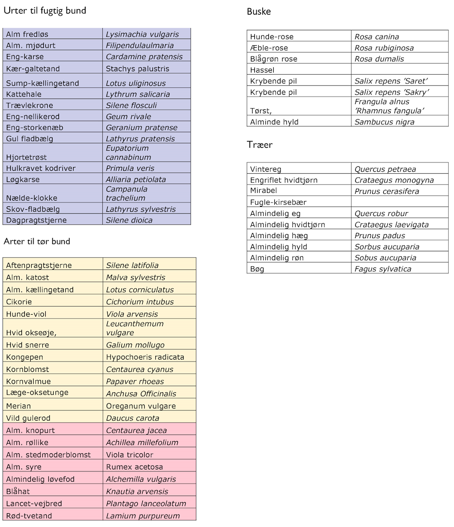 Eksempler på hjemmehørende arter, som understøtter biodiversiteten