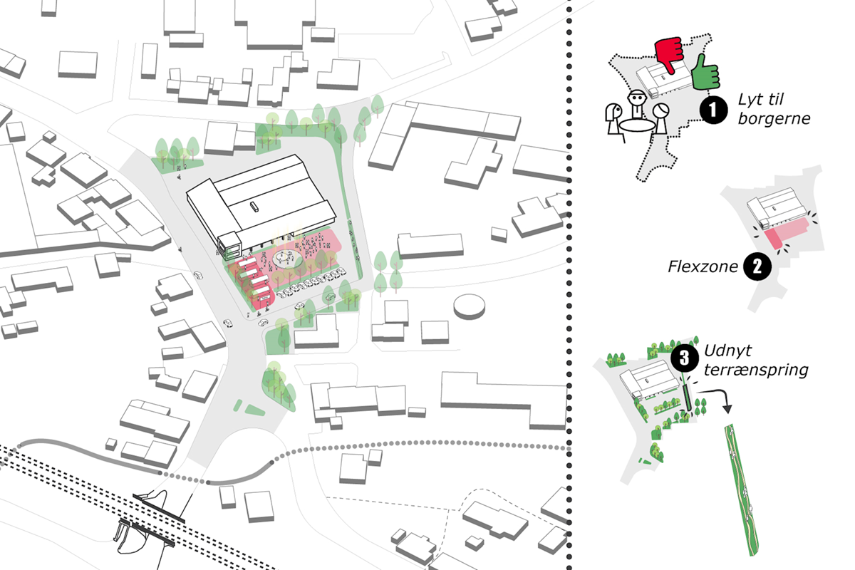Dette skal understøtte, at området bruges til fælles begivenheder i byen, men også hverdagsophold, hvor der er rum til at nyde vejret på en sommerdag eller mødes med andre fra byen året rundt.
