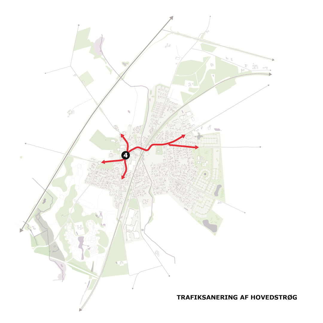 - Gør byen tryggere at færdes i som blød trafikant med trafiksanering langs de gamle hovedstrøg