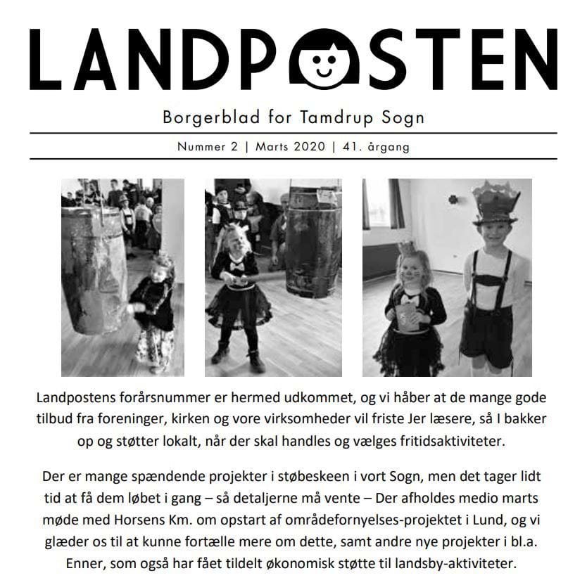 Gennem godt 40 år har lokale ildsjæle udgivet Landposten, som er et gratis omdelt borgerblad, finansieret af områdets lokale annoncører og foreningsannoncer. Bladet udkommer til de ca. 1.600 husstande, der findes i Tamdrup Sogn. Redaktionen består af 4 frivillige lokale borgere, og avisen uddeles af ca. 27 Vejposte, der uddeler bladet 6 gange om året. Bladet indeholder informationer om arrangementer, kirkestof, foreningsstof, info fra Lokalrådet osv. – Landposten bidrager særligt til at holde det læsersegment, der ikke orienterer sig på de digitale medier, orienteret om nyheder i lokalsamfundet.