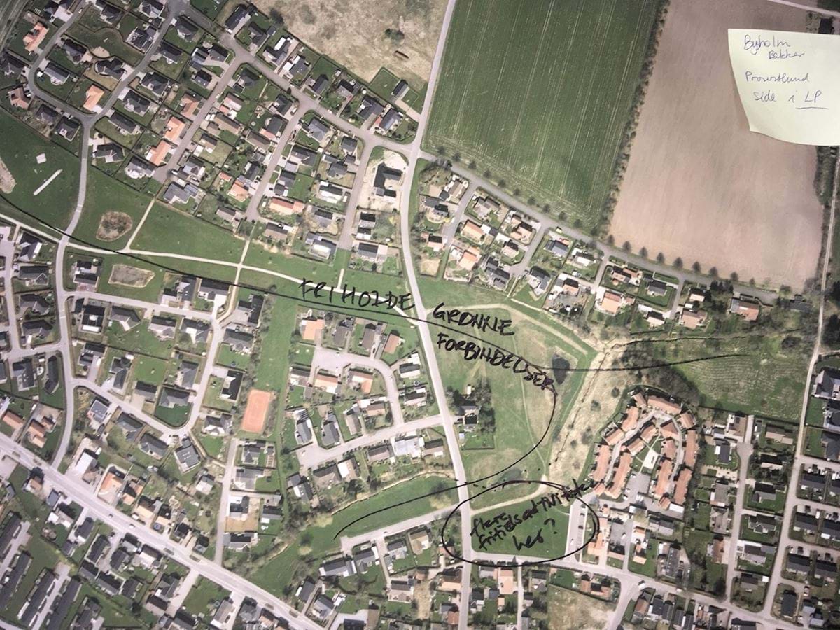 - Ønske om prioritering af styret byvækst i direkte tilknytning til og sammenhæng med byen og eksisterende veje og stier, for at undgå at byen fragmenteres yderligere. Konkret forslag om omkring Leddet/Skråningen/Bækvej.