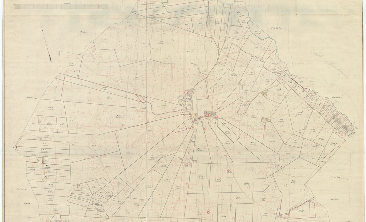 Kort over Rytterdistriktet og matrikelkort, der viser stjerneudskiftningen af Sdr. Vissing
