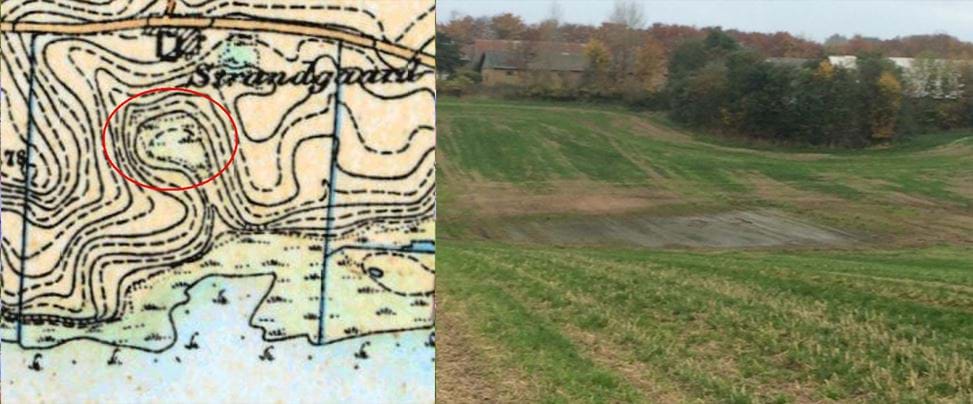 Kortet, høje målebordsblad, viser at området for mere end 175 år siden har været vådområde.