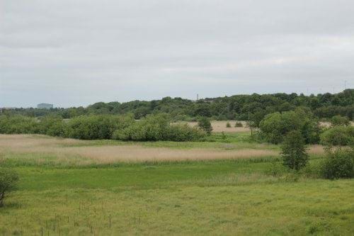 På billedet ses et vådområde. Området plejes med græsning, der bla. er med til at holde vegetationen lav til gavn for sjældne plante- og dyrearter.
