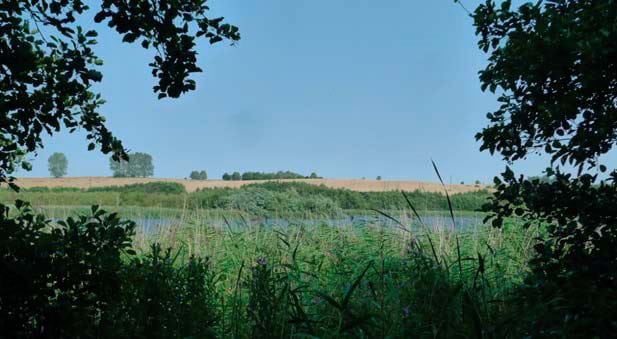 Kig mod projektområdet fra den sydlige del af Nørrestrand. Allétræer langs Nordre Strandvej er karakteristiske