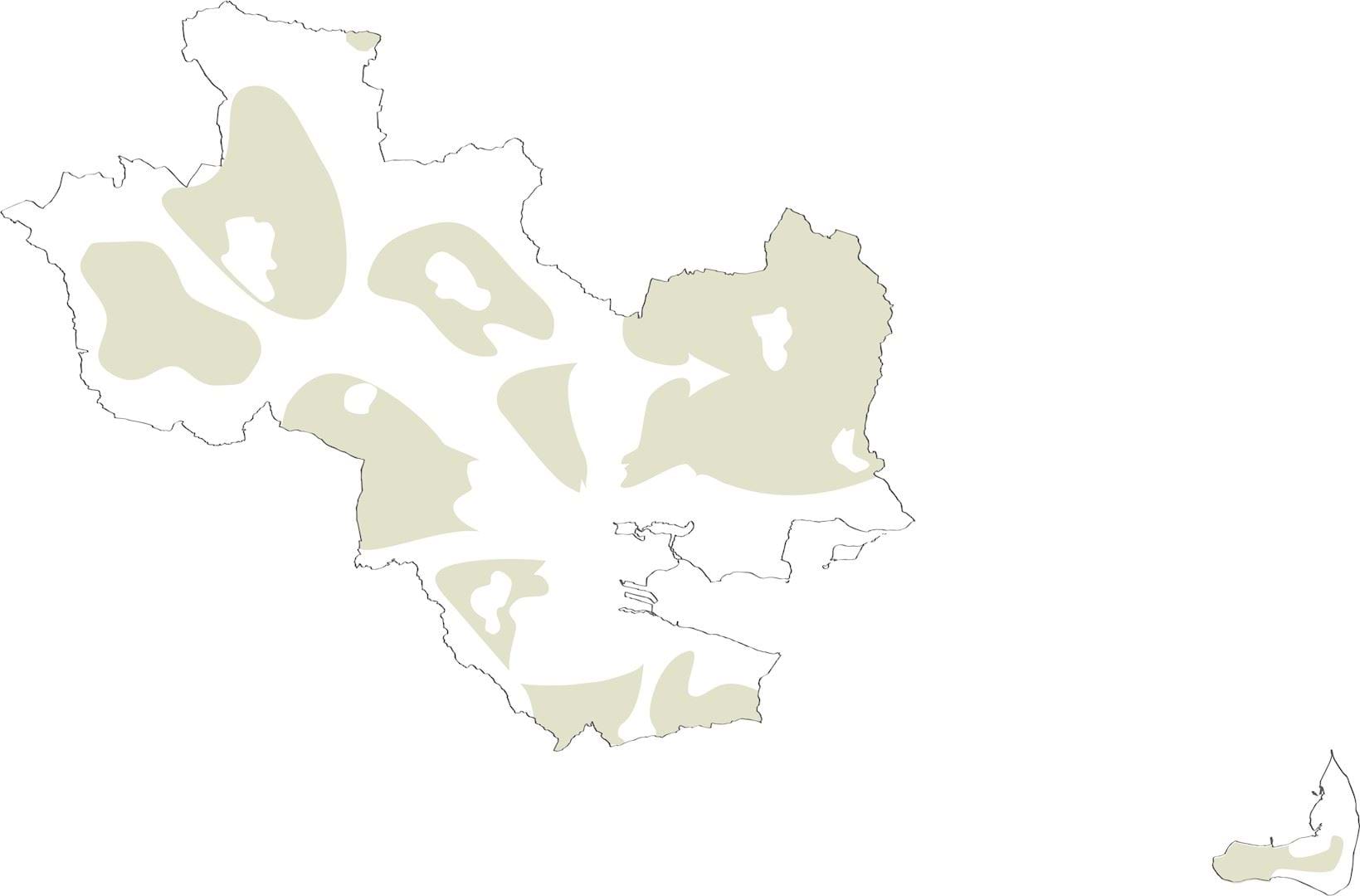Strukturen for det åbne land består i 2050 af de større produktionslandskaber omkring Hovedgård, Brædstrup og Nim.