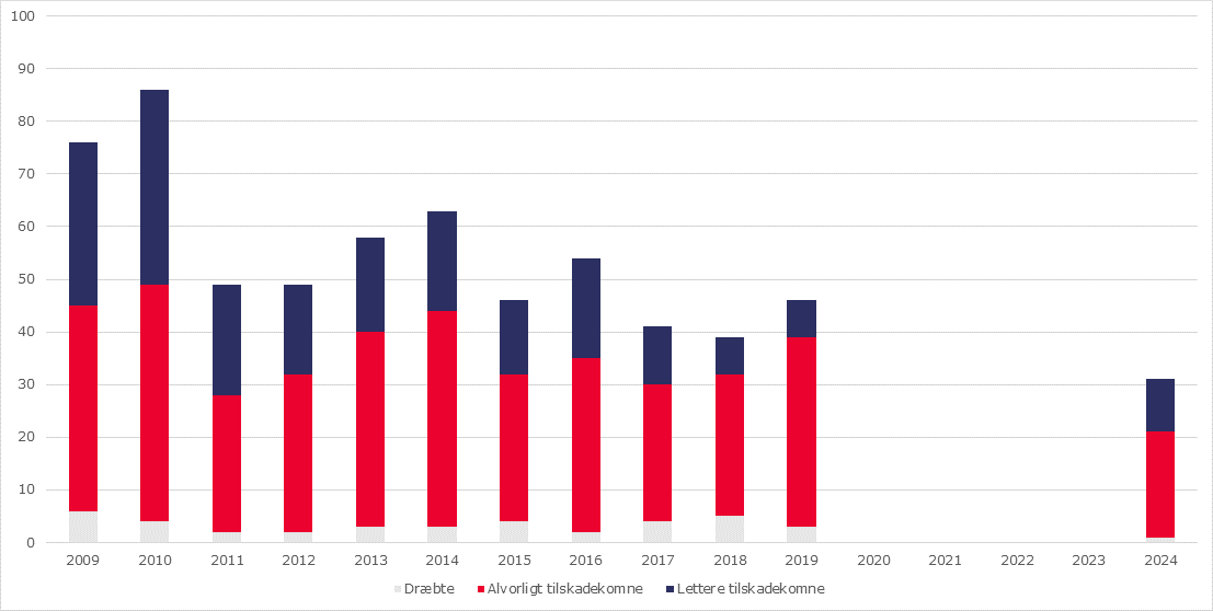 - Antallet af dræbte og tilskadekomne i kommunen skal reduceres i perioden 2021-2024.