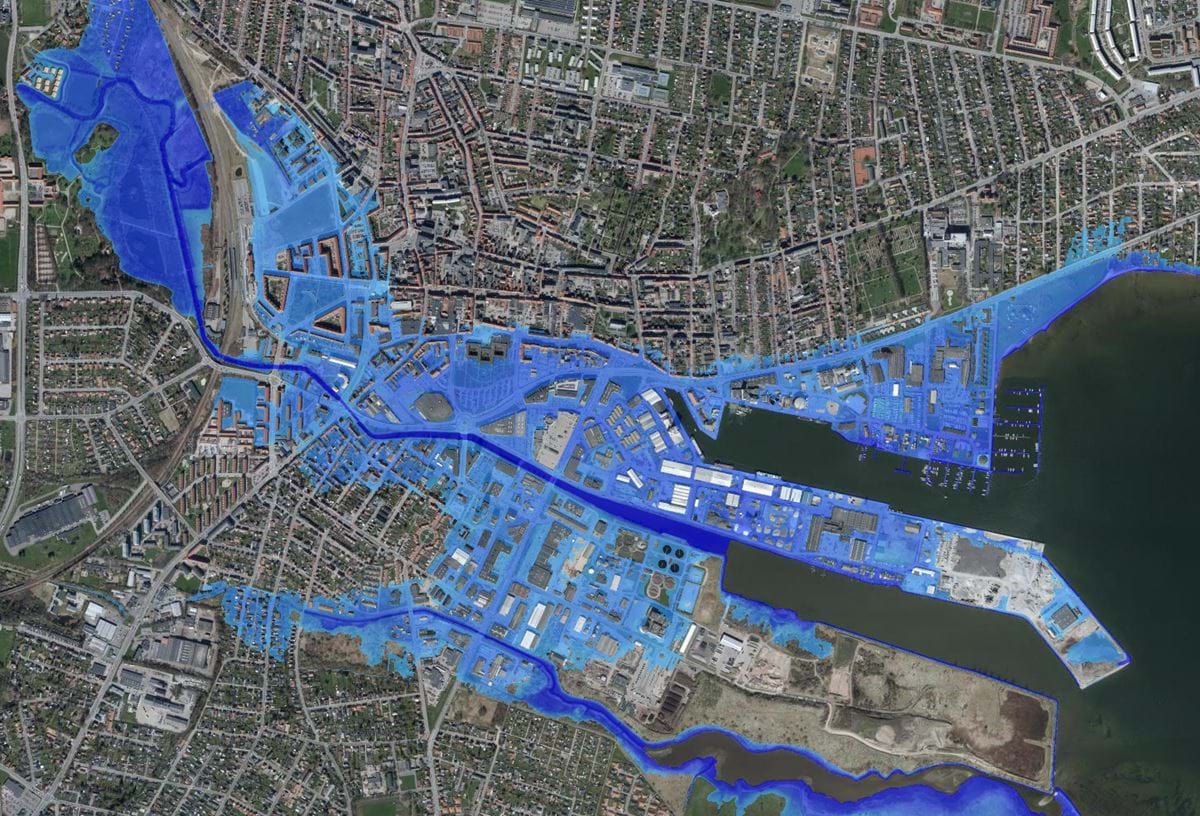 100-års hændelse i 2110 uden klimasikring af Horsens by.