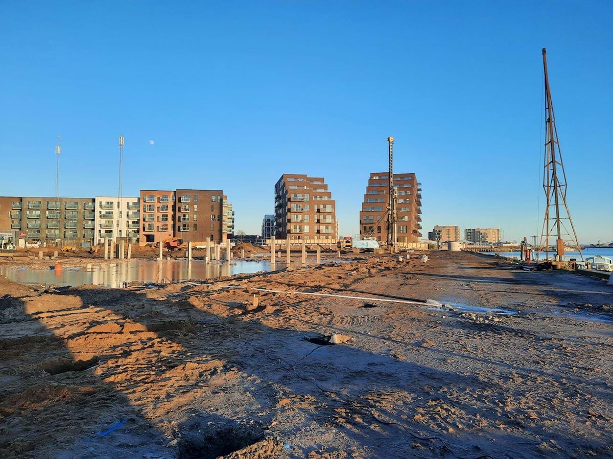 Billedet viser den igangværende omdannelse på Nordhavnen i Horsens.