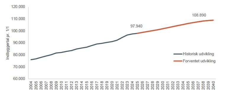 Befolkningsudvikling og prognose for Horsens Kommune. Kilde: COWI