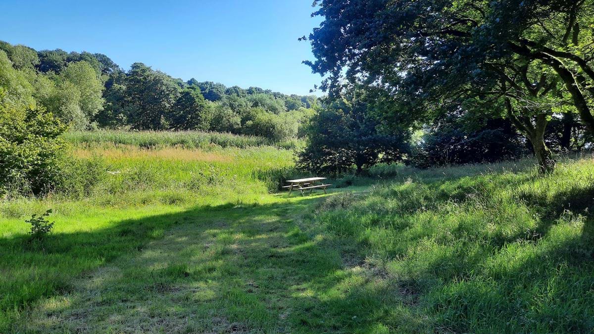 Billedet viser et bord-bænke-sæt ved Bygholm Sø.