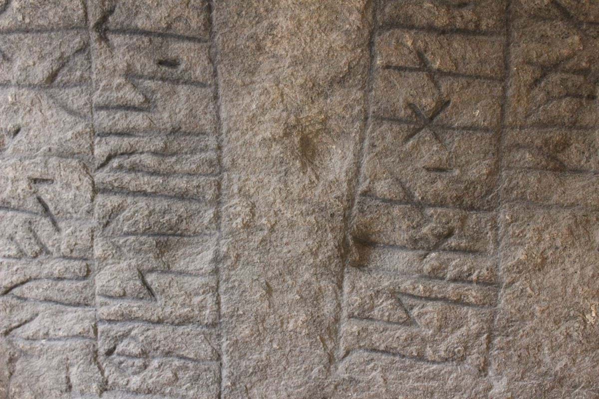Billedet viser en runesten med skålgruber i Sdr. Vissing.