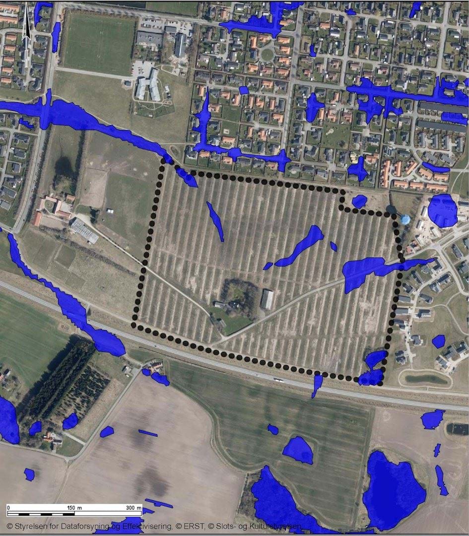 Af gamle målebordsblade (1842-1899 samt 1928-1940) ses at der tidligere har været et vandløb i området. Der skal være opmærksomhed på evt. eksisterende dræning og dennes funktion opretholdes eller erstattes.