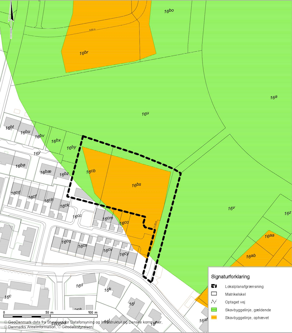 For så vidt angår det sydvestlige hjørne af lokalplanområdet, hvor skovbyggelinjen heller ikke er ophævet, vil der kunne bygges, når der lovligt er bygget nærmere skoven (jf. NBL § 17, stk. 3).