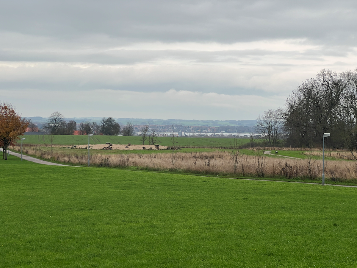 Billederne viser områdets terræn og udsigt ud mod fjorden samt den omkringliggende bebyggelse.