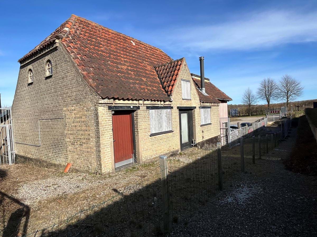 Den ældste af bygningerne er det tidligere stuehus, opført i 1870 i ét plan og registreret med SAVE-værdi 5. Bygningen er opført i gule tegl med røde vinduesrammer og rødt tegltag. Facaden er karakteriseret af flere dekorative elementer i murværket. Mod Nordrevej er facaden delvist dækket af klatreplanter. Stuehuset har stået ubeboet i en længere årrække og fremstår i dag i væsentlig grad nedslidt.