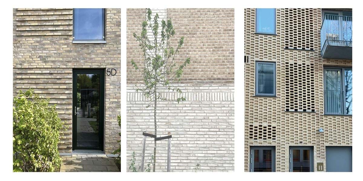 Boligerne brydes ned i skala med detaljer på facaderne og den omkringliggende beplantning, således at de tilpasse områdets skala. Materialiteten fra det gamle Tyrstedgård-stuehus og den omkringliggende bebyggelse videreføres igennem gule tegl og forskelig detaljering i murværket. Dette er med til at binde området sammen på tværs af forskellige etaper.