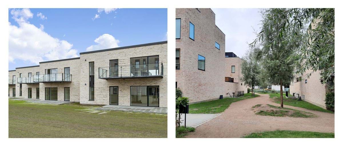 Til hver bolig sikres der udendørs opholdsarealer i form af små terrasser eller altaner. Boligerne vil blive orienteret mod enten den fælles fordelingsvej, eller mod udsigten over de grønne kiler samt skov og fjord.