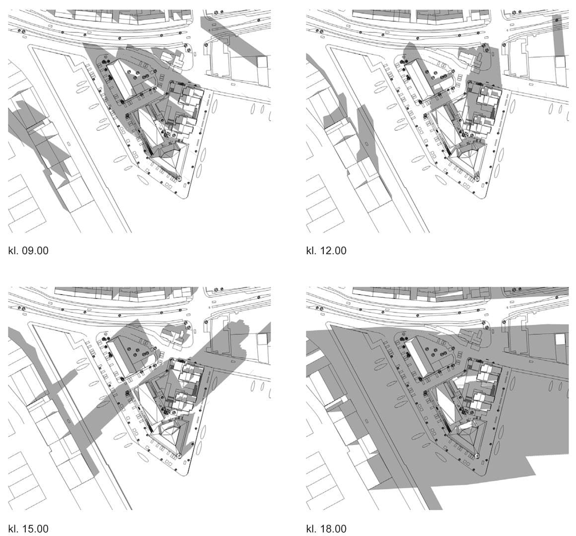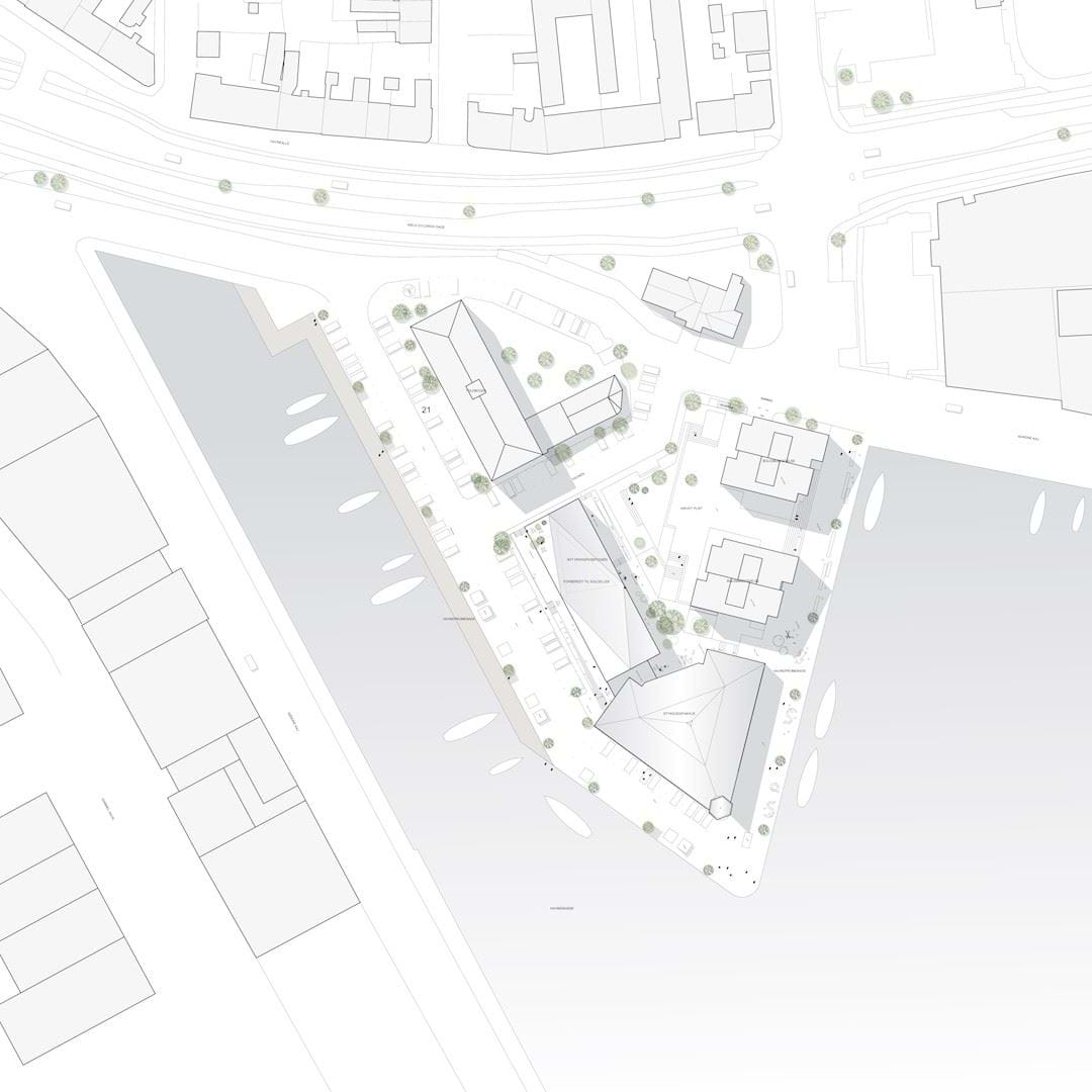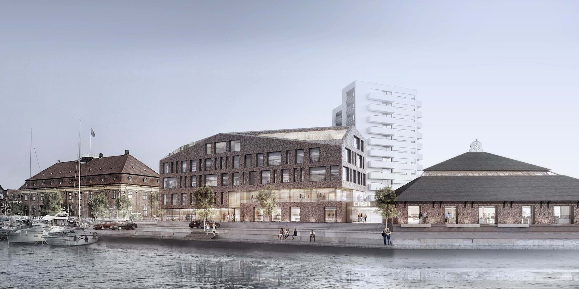 Kontorbygningen skal i dimensioner og farveholdning tilpasses Toldboden og Stykgodsbygningen, men give udtryk for nutidens arkitektur. Den øverste etager trækkes tilbage og taget sænkes mod Toldboden og Stykgodspakhuset for at tilpasse sig deres højder og tagformer. En del af den nederste etage, hvor der kan placeres butik eller restaurant, åbner sig ud mod kajen for at at tilføre promenaden en aktiv facade. Bygningen skal fremtræde i tegl i samme farvetone som nabobygningernes gamle teglfacader.