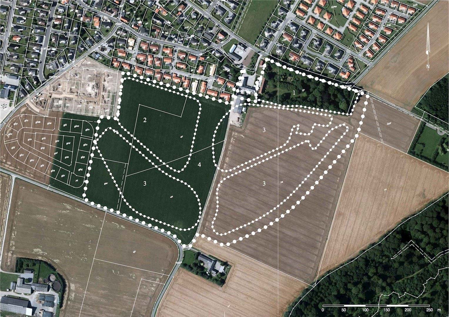 Luftfoto med Lokalplan- og delområdeafgrænsning