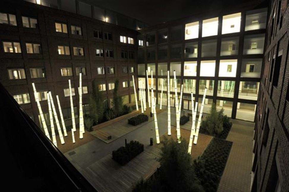 Reference på et urbant byrum grafiske mønstre og belysning (SLA Arkitekter)