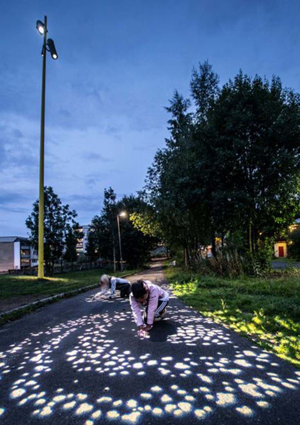 Lyssætningen danner mønster på belægningen. Mønstret kan skiftes ud ved særlige arrangementer og højtider.
