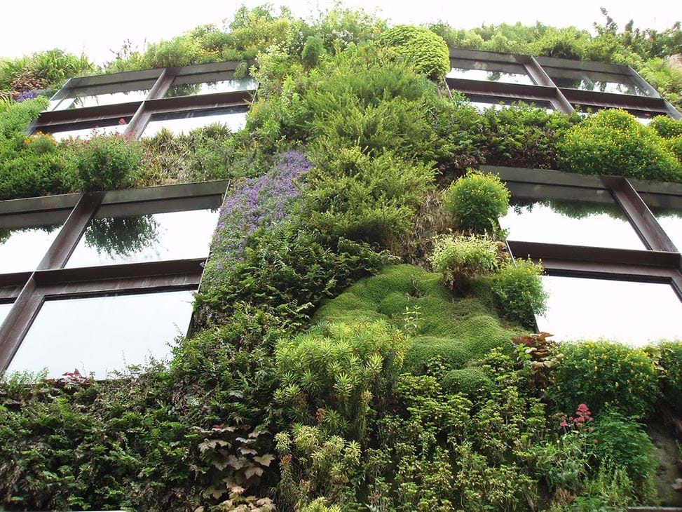 Billede af en grøn facade som skaber levemulighed for flora og fauna.
